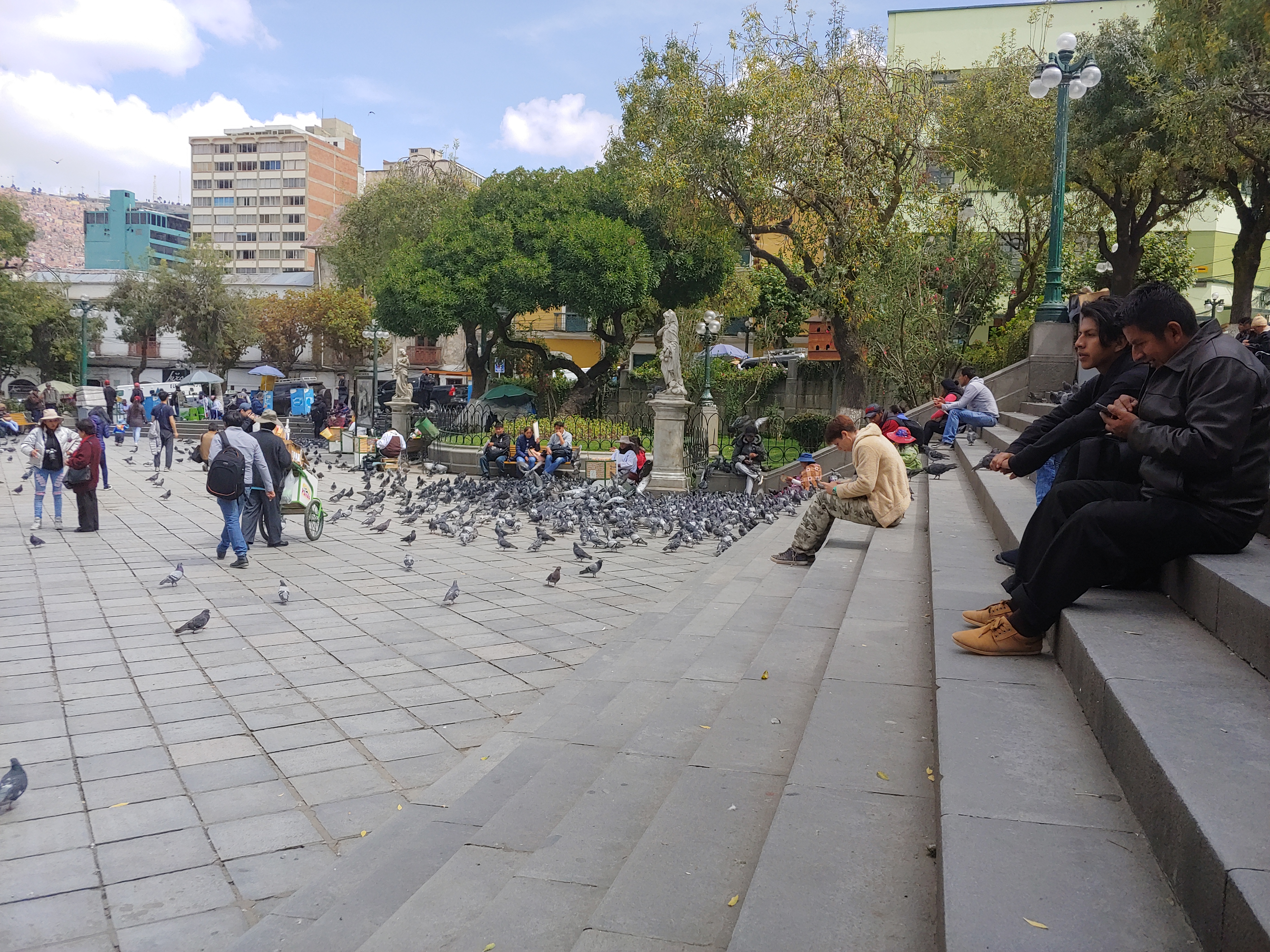 Das ist der Plaza Murillo. Man füttert hier Tauben, deswegen ist alles voll mit denen.