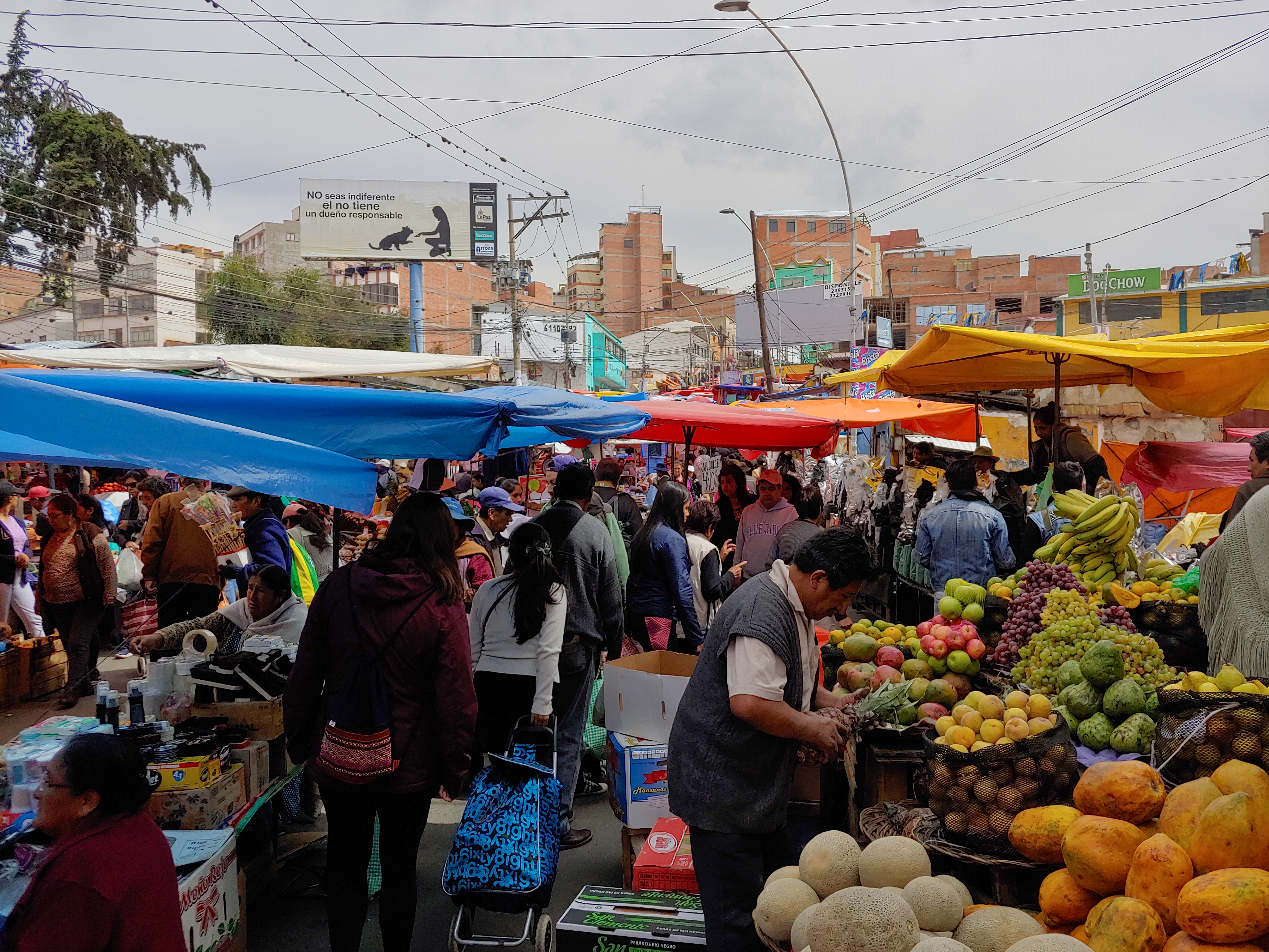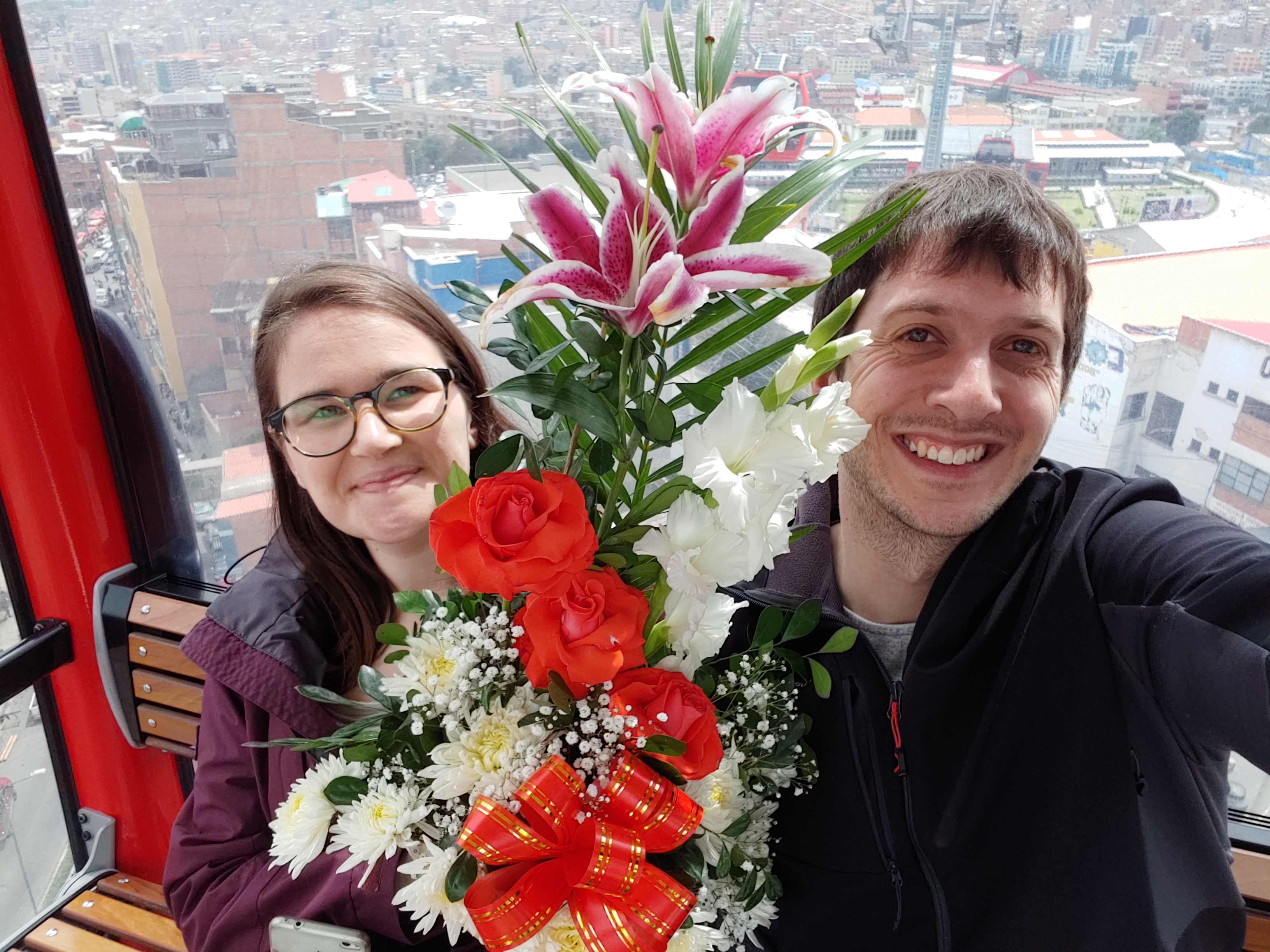Als wir dann die richtige Ecke gefunden hatten, haben wir für in etwa 3€ das richtige Gesteck binden lassen. Dieses haben wir dann überglücklich erst durch halb La Paz und anschließend mit dem Teleferico nach El Alto (dem am höchsten gelegenem Stadtteil von La Paz ca. 4100 m und ca. 1 Million Einwohnern) transportiert.