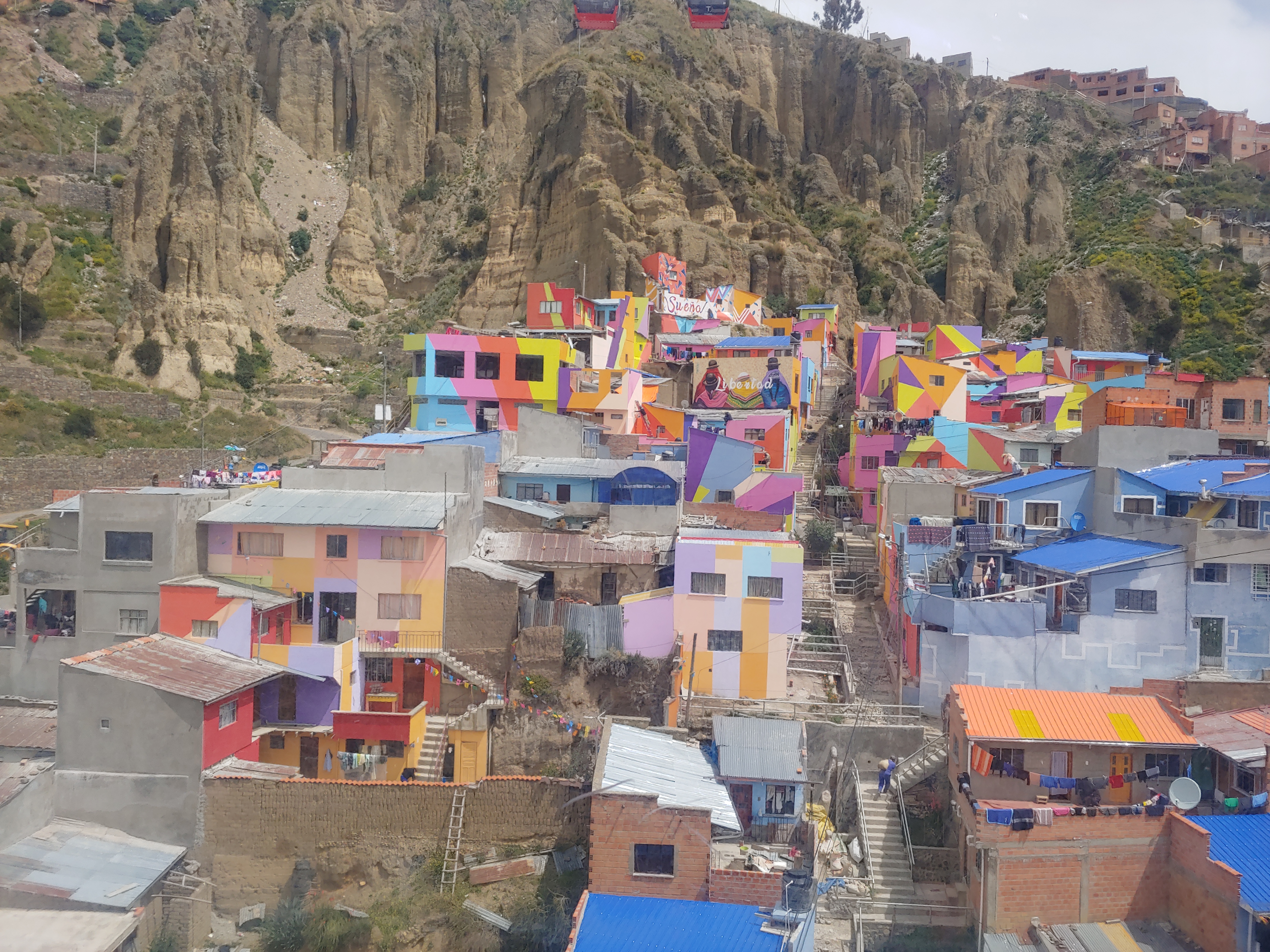 Auf dem Weg nach El Alto kann man dann noch interessante Dinge entdecken wie z.B. ein in den Felsen steckendes Auto oder schön bunt gestrichene Häuser.
