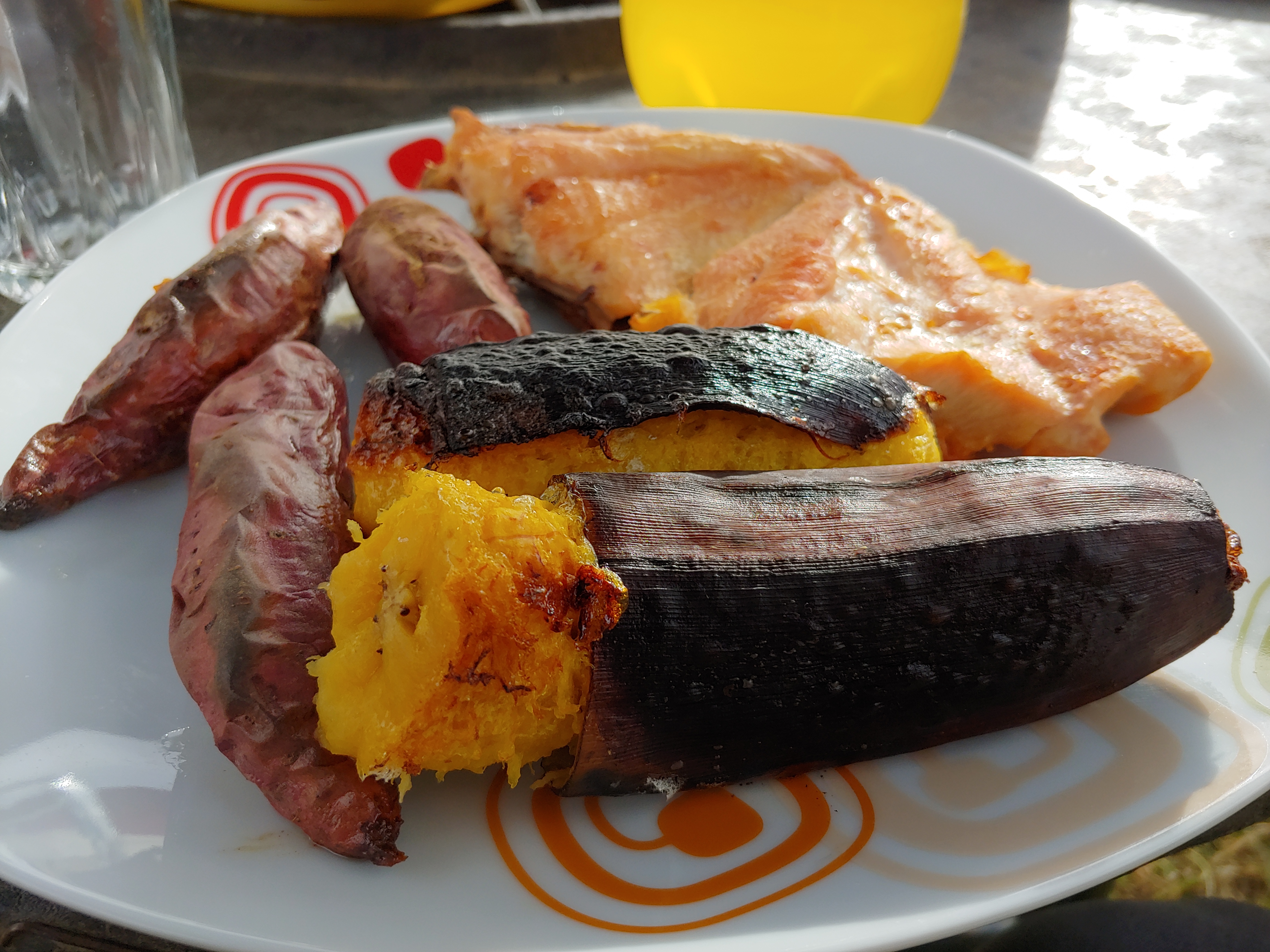 Aydee und ihr Mann Ephraim haben dann noch für uns gekocht. Es gab natürlich Hähnchen, dazu Süßkartoffeln und Kochbananen.