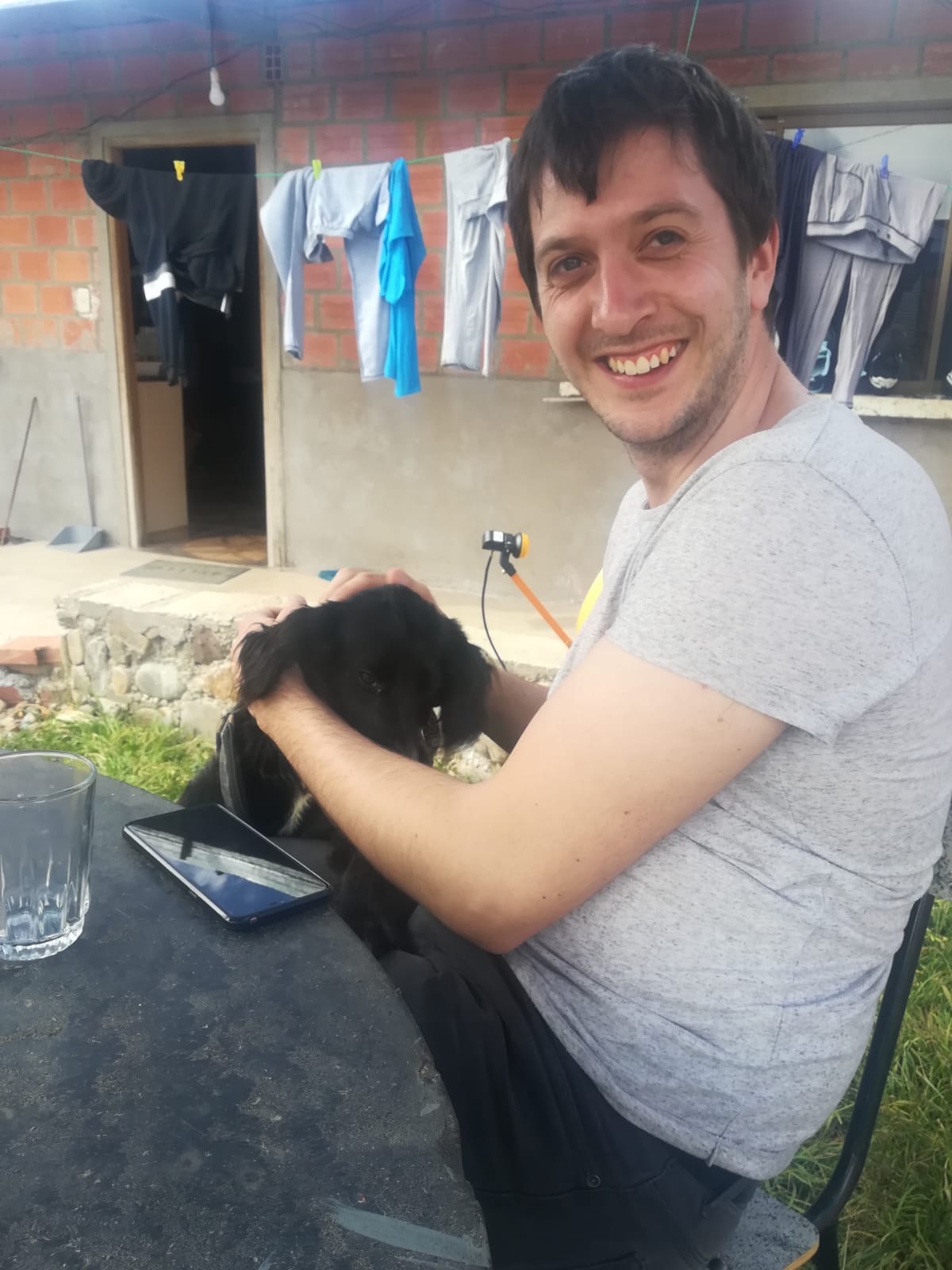 Zum Nachtisch gab es dann noch Kokoswasser. Jakob hat besonders die beiden Hunde schnell in sein Herz geschlossen.